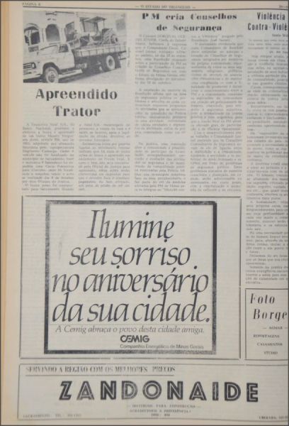 A Financeira Sinal S/A do Banco Nacional procedeu e efetivou a busca e apreensão de um trator Massey Fergusson (foto) modelo 296, ano 1983, adquirido por alienação fiduciária pelo agropecuarista Dagoberto Camargo. Como o veículo não foi localizado no município de Sacramento, onde o mutuário é fazendeiro foi expedida uma carta precatória para Uberaba, onde foi localizada a máquina, tendo o auto se realizado dia 9 de outubro por dois oficiais de Justiça.