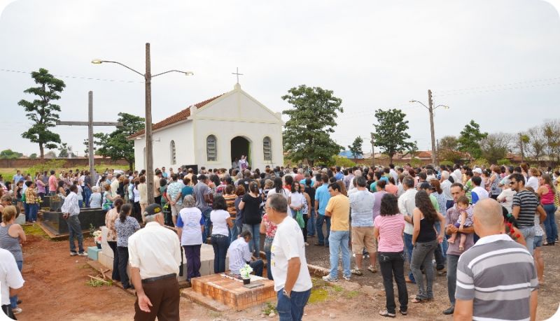 Fieis participam de missa no cemitério São Francisco de Assis celebrada por Pe. Eduardo