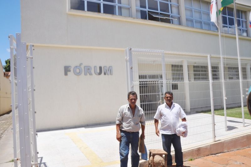 Uma decisão judicial de reintegração de posse de um dos lotes do Assentamento Olhos d'Água (MST) levou dois moradores do local a protestar diante do Fórum Magalhães Drumond, em Sacramento, dia 06 último. Jaime Roberto Borges (Pezinho), 54, e o novo ocupante do lote nº 1, de oito alqueires, José Alencar da Rocha Terra, doado pela reforma agrária, no início do assentamento, em 4 de junho de 1999, a José Luiz da Rocha Filho, lamentaram a liminar concedida, porque o lote está abandonado pelo seu antigo proprietário há mais dez anos, segundo relata Pezinho.