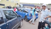 Zé Doido, em momento de reflexão, olha marca do tiro na caixa de ar de seu carro