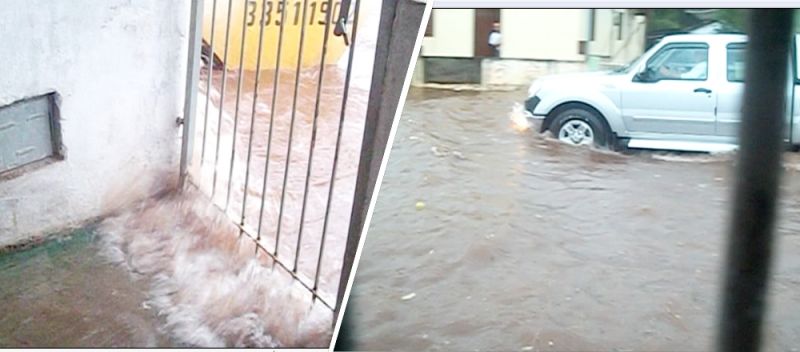 Chuva alaga ruas na cidade e invade residências