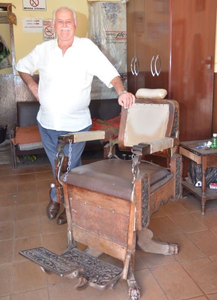 Hilário Tomaz, 74, nestes dias que antecedem a data dos 194 anos de Sacramento, é um dos guardiães da história da barbearia no município ao conservar no seu salão, ali na praça Dr. Valadares,  uma relíquia: uma cadeira de barbeiro de puro mogno e ferro, que deve pesar no mínimo uns 60 quilos.