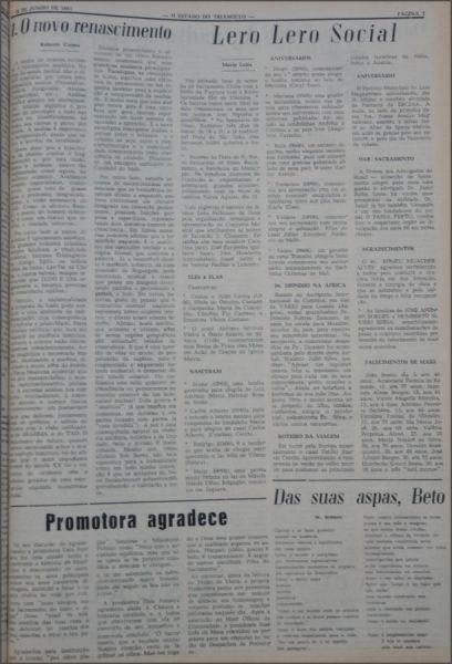 Um animado final de semana no Sacramento Clube, com a Noite da Paquera e som da Rádio Sociedade FM de Uberaba. *** Os bairros da cidade comemoraram este mês os seus santos juninos com fogueiras e quadrilhas. No Seminário do Santíssimo Redentor, três dias de festas, de 19 a 21 e a já tradicional Festa de S. João, com barracas, leilão, quimbol e forró.