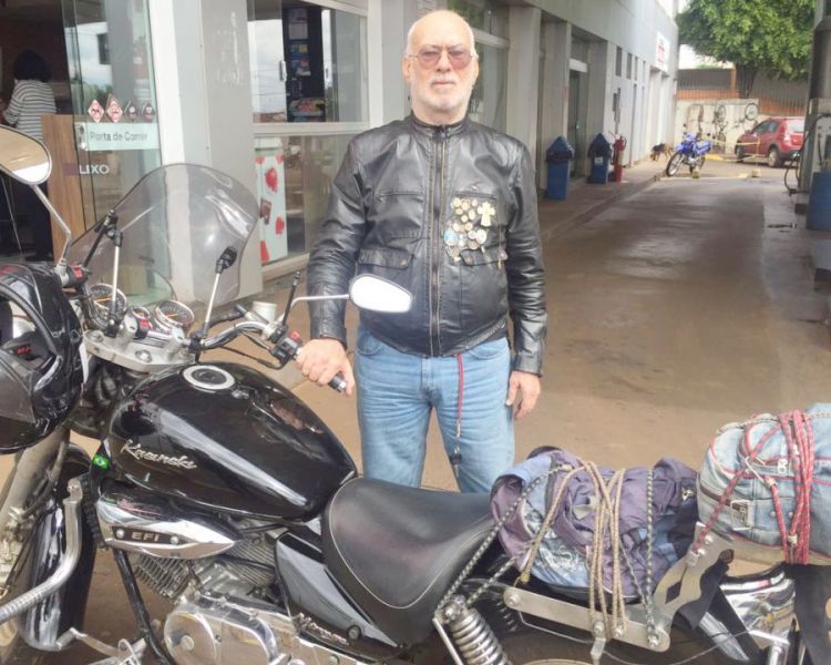 O engenheiro mecânico aposentado, Geraldo de Freitas Drummond, 68, natural de Nova Era (MG), mas radicado em Belo Horizonte, desde 11/03/ 2014 percorre de motocicleta, uma Kasinski Mirage 250, o Estado de Minas Gerais. Nessa terça-feira 17 esteve em Sacramento, completando 332 cidades visitadas, dos 545 municípios servidos por asfalto, oportunidade em que conversou com o ET, no Posto Santo Antônio, quando foi recebido pelo proprietário Jaiminho Araújo e o gerente Celso Almeida.