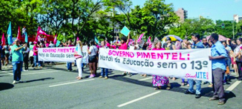 Que férias, que nada! Com a chamada, “Natal da Educação sem 13º”, o Sind-UTE/MG chamou a classe à luta, sobretudo os  servidores do Estado que continuam trabalhando: pessoal do administrativo das escolas, das Superintendências Regionais de Ensino, auxiliares de serviços gerais em todo o estado, e  servidores  da Secretaria de Estado da Educação e foi para a rua nessa quarta-feira 27, para cobrar, mais uma vez, o pagamento do 13º Salário.