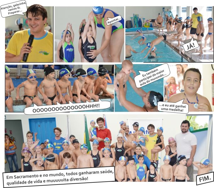 Mais uma vez a criançada movimentou a piscina da Academia Atlântica, na terça-feira, 18, na Maior Aula de Natação do Mundo, “The World ́s Largest Swimming Lesson” (WLSL), evento que surgiu nos Estados Unidos há quatro anos, como resultado da reunião das principais entidades americanas de segurança aquática e treinamento, com o objetivo de intensificar a luta contra afogamentos, em especial, de crianças.