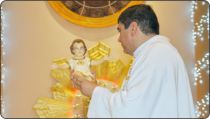 Pe. Jaime Ribeiro, pároco da Basílica, entroniza a imagem do Menino Jesus no presépio