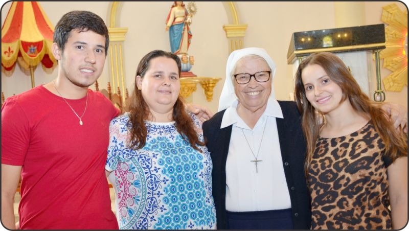 Ir. Gracinda se despede de João Pedro, Regina e Isabella, ex-alunos da Ciju