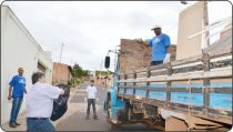 O prefeito Wesley De Santi recolhe saco de lixo no Mutirão de Limpeza