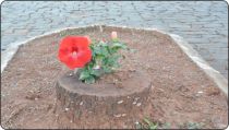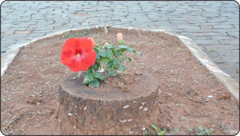 Hibisco cultivado no cerne da palmeira: Após a morte a vida sempre renasce mais bela...