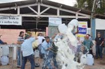 O tradicional banho de leite nos vencedores do Torneio Leiteiro no Parque de Exposição