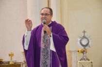 O pároco Pe. Sérgio Márcio e a mão da imagem da Padroeira segurando a Custódia: intacta