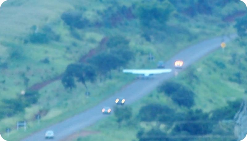 Momento da aterrissagem do Cessna na rodovia MG 190: em baixo, os cabos de alta tensão