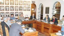 Reunião da Câmara Municipal, fora do plenário principal, que está em reforma