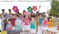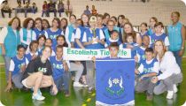 Camila Brait com os alunos da Escolinha Tio Toffe, classificada em 1° lugar no desfile