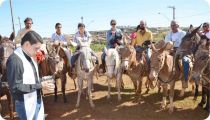 Padre André se une em oração a um grupo de cavaleiros com destino a Romaria