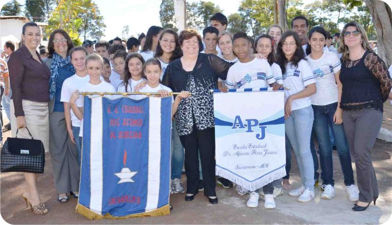 Secretária Ana Lúcia Gazolla entre alunos das escolas estaduais da cidade
