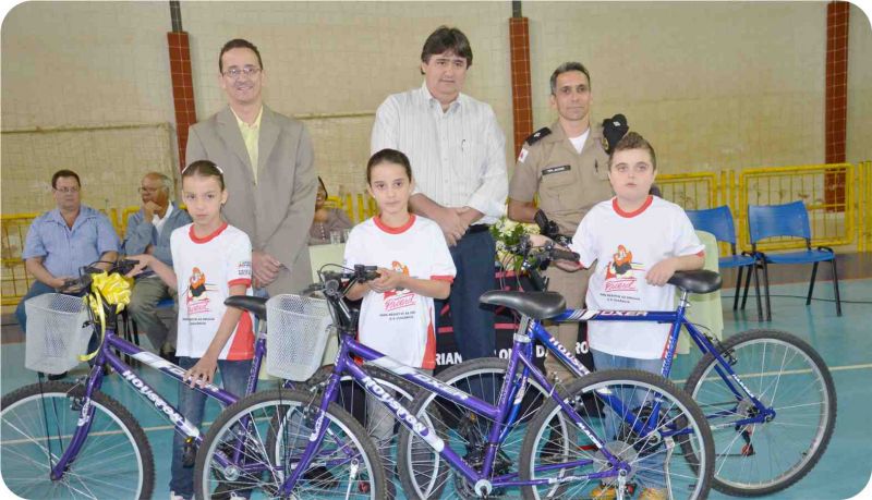 Autoridades e alunos do PROERD, ganhadores do prêmio de melhor redação
