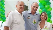 O candidato Toninho Andrade entre os amigos, Vani e Cleusa Ramos