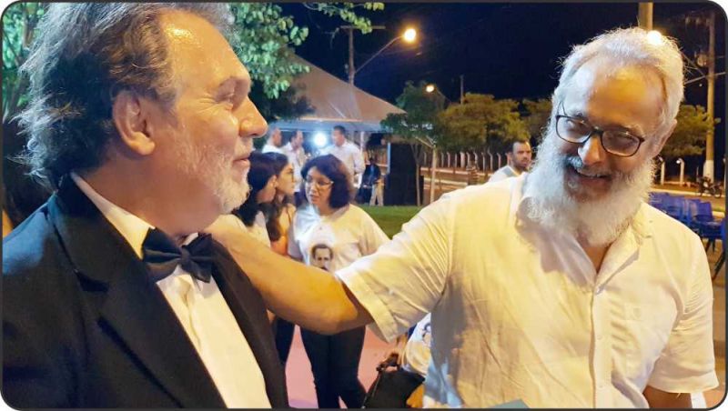 Prof. Poggetti recebe cumprimentos do médico Ivomir Cunha pelo lançamento da obra
