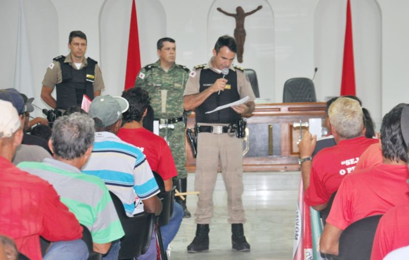 Aos 15 (quinze) dias do mês de fevereiro do ano de 2018, às 15h10min, no Plenário da Câmara Municipal de Sacramento/MG, aconteceu a 3ª Reunião da 1ª Fase de Reintegração de Posse da Fazenda Chapadão do Zagaia, achando-se presentes, o Sr Ten Cel PM Fernando Marcos dos Reis, Cmt do 37º BPM, o Sr. Cap PM Andre Luiz de Oliveira, Cmt da 183 Cia PM, o 1º Ten PM Belchior dos Reis Carvalho Filho, Cmt da 184ª Cia PM, o 1º Ten PM Josué Muniz da Chagas, Chefe da Seção de Planejamento e Operações do 37º BPM, o 2º Ten PM Carlos Antônio Lourenço, Cmt do 5º Pelotão MAMB, o Sr.