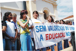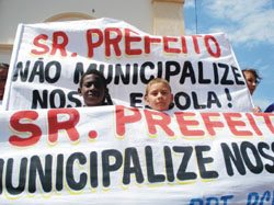 Na praça Getúlio Vargas, o professor Carlos Alberto Cerchi explicou em alto e bom som, o que representa a municipalização. “Há uma maneira do governo do Estado passar para as prefeituras uma obrigação que é sua, de manter as escolas públicas e de boa qualidade. Esse é um direito assegurado constitucionalmente. Quando a cidade manifesta o interesse de assumir essa responsabilidade, que é do estado, é necessário que sejam estabelecidos critérios e discutidos esses critérios. Por enquanto ainda não está comprovado que a municipalização do ensino possa trazer algum benefício para a comunidade. As experiências que vemos por aí são constrangedoras em todos o sentidos. Até quem nos provem com dados concretos continuamos contra a municipalização, por isso queremos dialogar, conversar, discutir, saber os critérios. E vamos continuar mobilizados até termos uma resposta objetiva em função desse não”, disse o professor, lembrando que no atual governo Aécio, nenhuma escola foi municipalizada no Estado