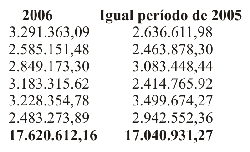 Preocupado com a propalada propaganda que o prefeito Joaquim Rosa Pinheiro e equipe de governo, vem fazendo sobre a queda da arrecadação este ano, o vereador José Carlos Basso De Santi Vieira , o Fofão, solicitou do contador da Câmara um levantamento para apurar o fato. Um demonstrativo da Receita Orçamentária da prefeitura referente aos exercícios de 2004, 2005 e 2006 provou que, ao contrário do que se diz, não houve queda da arrecadação, inclusive com a comparação da arrecadação entre os meses de janeiro a junho de 2006 com igual período de 2005. Veja: