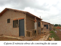 Informou mais o prefeito que “as obras do residencial Jardim Primavera (Cajuru II, no bairro Perpétuo Socorro) foram reiniciadas. “A Prefeitura juntamente com a Caixa liberou recursos para a execução dos serviços que compreendem a colocação das esquadrilhas (portas, janelas e venezianas e revestimentos. Atendendo o cronograma do processo habitacional, de acordo com o caixa financeiro da Prefeitura, o governo municipal está cumprindo com o seu compromisso”, disse mais Joaquim afirmando queé necessária a liberação de parcelas pela Caixa para dar continuidade às obras. Já o gerente da Caixa, Ludson José Machado, diz o contrário: “Se não houver serviço feito, confirmado através de medição por parte de um técnico da Caixa, não há liberação”.