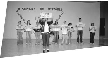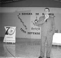 Abordando o tema, “Trabalho, cidadania e ética, tudo depende de você”, a EE Cel José Afonso de Almeida realizou entre os dias 4 a 6 de setembro a II Semana de História, coordenada pelas professoras da área, Rita de Cássia Almeida, Inês Borges Estevão, Andréia Barbosa Santana, Irany Bizão e Sheila Borges Melo. “Fundamentados nesse tema, pretendemos colaborar para a construção de uma sociedade escolar mais dinâmica, mais critica, mais participativa, e sobretudo, mais feliz”, disse a profa. Rita Almeida, abrindo o evento, realizado no Galpão Cultural da escola.