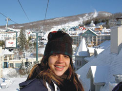 ET - O sonho de consumo de muita gente é uma viagem dessas... fale da experiência que tiveram. Carol - A experiência desta viagem foi fascinante, foi a 1ª vez que viajei de avião e para outro pais. Fiz escala em Nova Iorque, e fui para Montreal, no Canadá. Já na primeira semana fui conhecer a estação de esqui Mont Tremblant, nos hospedamos no albergue da juventude. Esse foi o meu 1º contato com a neve, o que foi uma emoção incrível! A cada lugar que visitávamos era uma descoberta, tudo muito diferente do Brasil. As construções e os espaços públicos são todos muito belos e chamaram muito minha atenção. Pude conhecer a variedade de culturas que se misturam na cidade. Aí comecei a fazer o curso de inglês o dia todo, o que me consumiu a maior parte do tempo. Mas foi realmente um grande sonho realizado, adorei tudo, mas a saudade da família e do meu país tropical começou a apertar. Ana Letícia A maior experiência que destaco foi a oportunidade de viver alguns dias dentro de outra cultura e poder aperfeiçoar o meu inglês. Só isso valeu por tudo.