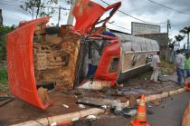 De acordo com o motorista, o caminhão perdeu os freios na MG190 e, ao chegar ao trevo, capotou e chocando-se contra um poste de iluminação pública. O condutor ficou preso nas ferragens, mas com a ajuda de populares, a Policia conseguiu retirá-lo e logo foi encaminhá-lo ao pronto socorro da Santa Casa.