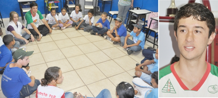 O professor de Educação Física, Geraldo Magela Manzan Carvalho, 20, emocionou-se numa das salas de aula da Escolinha Tio Tofe (APAE), na quinta-feira, 15, pela manhã, quando foi recebido com o ídolo pelos alunos da professora Maria do Carmo Ferreira (Kaká), que durante alguns meses trabalhou com os alunos entre 9 a 11 anos, a biografia, rica em fotos, de Geraldo desde bebê, do jovem professor e atleta, que dá exemplos pela sua postura na vida social, desportiva, religiosa e familiar. E o melhor, os baixinhos nem sonhavam quem era o ídolo.