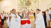 Dom Paulo Mendes Peixoto, há pouco mais de um mês à frente da Arquidiocese de Uberaba, encontra-se na fase de conhecer a realidade das paróquias, as igrejas, os movimentos, pastorais e, em cada reunião ou visita, leva a sua mensagem de paz, esperança e fé. No dia 31 de maio, presidindo a concelebração eucarística que marcou o encerramento da Festa da Padroeira, dom Paulo encantou pela sua simplicidade e oratória e, com humildade agradeceu as homenagens recebidas de Sacramento, através de autoridades e leigos.